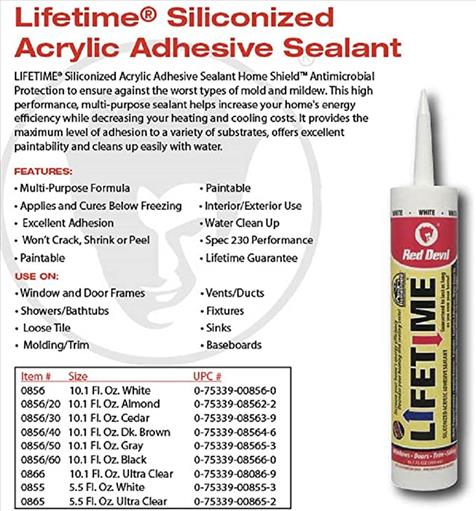 Lifetime® Ultra 230 Premium Elastomeric Acrylic Latex Sealant is a high performance, multi-purpose sealant formulated to last for the lifetime of your home. This unique formulation provides the maximum level of durability on a variety of substrates indoors or outdoors. It offers excellent paintability and includes HomeShield#153. Antimicrobial Protection to ensure against the worst types of mold and mildew. Cured sealant is mold and mildew resistant.